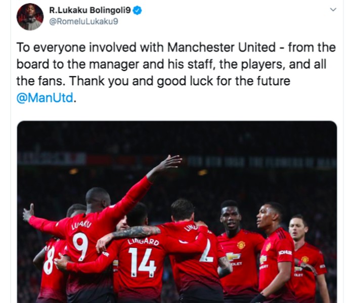 Ucapan selamat tinggal dari media sosial MU untuk Lukaku. Foto: istimewa