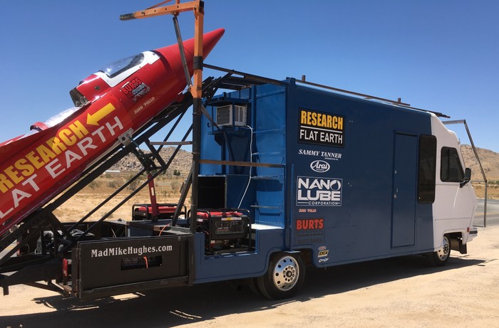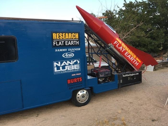 "Perjalanan ini hanya tahap awal dari program antariksa saya untuk membuktikan bahwa Bumi itu datar," ujarnya.Β Foto: Facebook