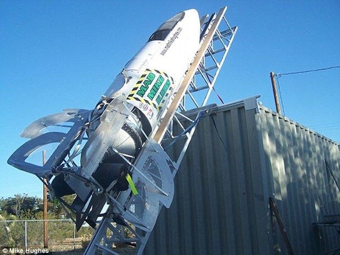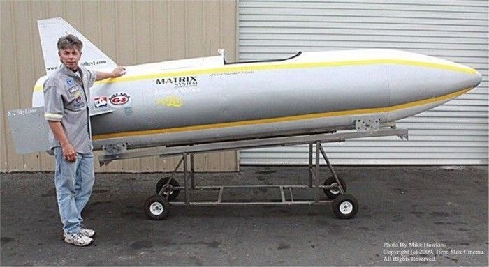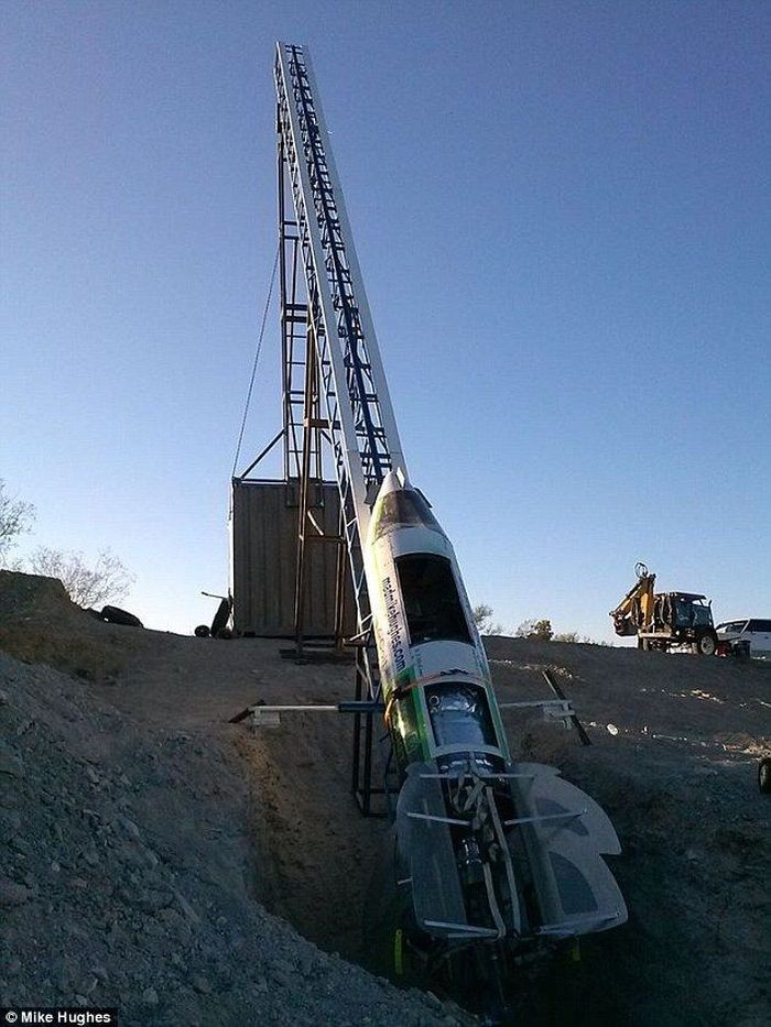 Dengan roket ini, Mike ingin terbang setinggi 1.800 kaki (550 m) pada Sabtu mendatang waktu setempat dan menjepret bumi dari angkasa. Si roket berbahan logam sederhana yang dirancang sendiri.Β Foto: Facebook