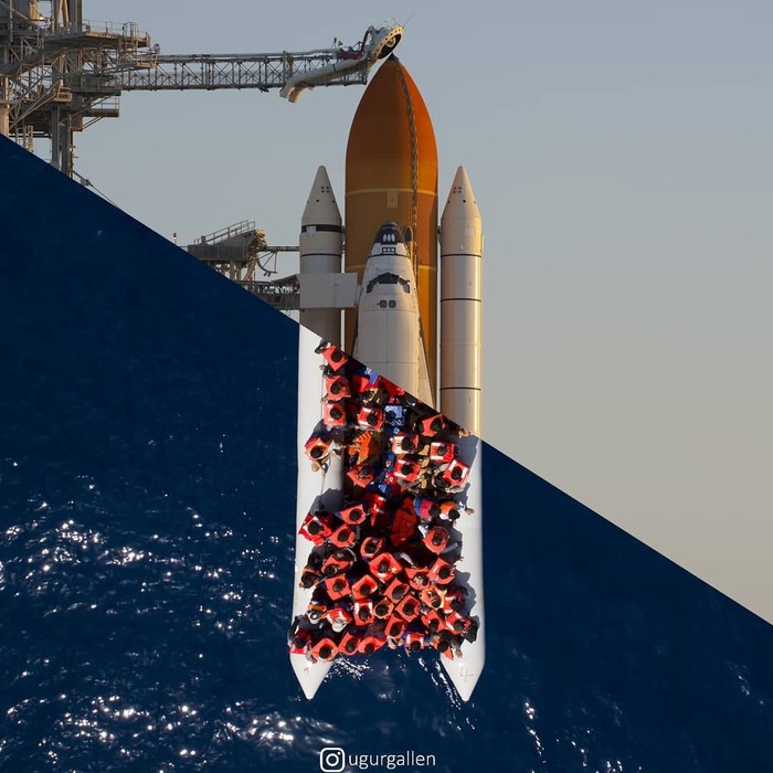 Pengungsi dan migran dari Eritrea, Mali, Bangladesh menunggu di atas kapal untuk diselamatkan di Laut Mediterania. Foto: Uğur Gallenkuş
