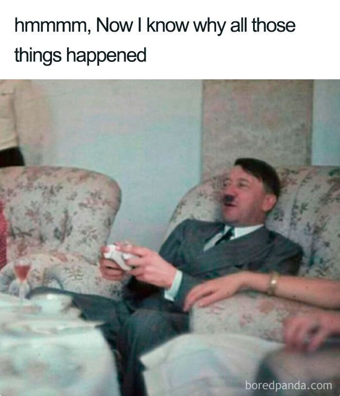 Dalam sejarah, Adolf Hitler identik dengan kekerasan. Apa itu dikarenakan ia gemar main video game?Β (Foto: via Boredpanda.com)