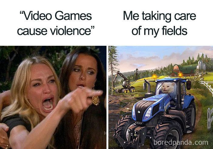 Video game memicu kekerasan? Padahal main game-nya simulasi peternakan lho. (Foto: via Boredpanda.com)