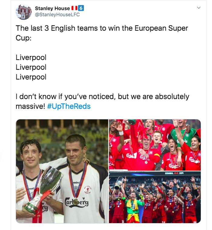 Liverpool adalah tim Inggris yang 3 kali berurutan menang Piala Super Eropa. Foto: istimewa