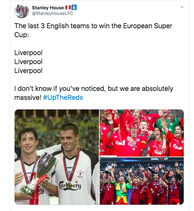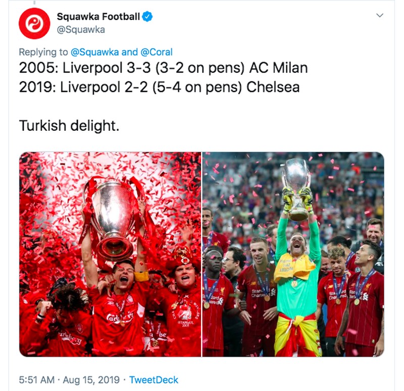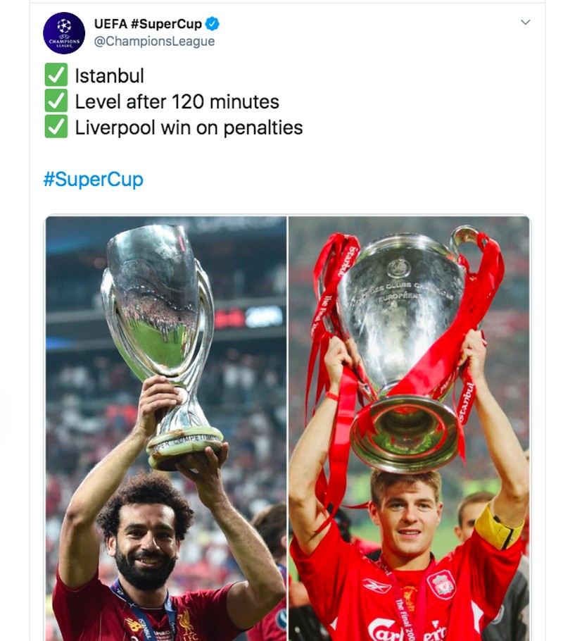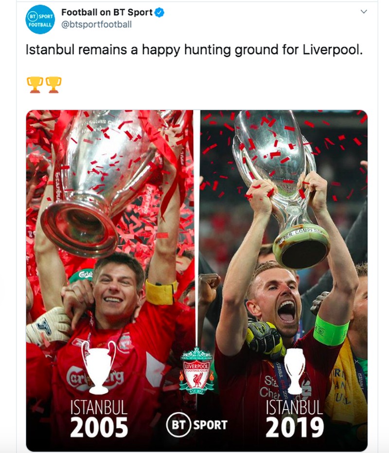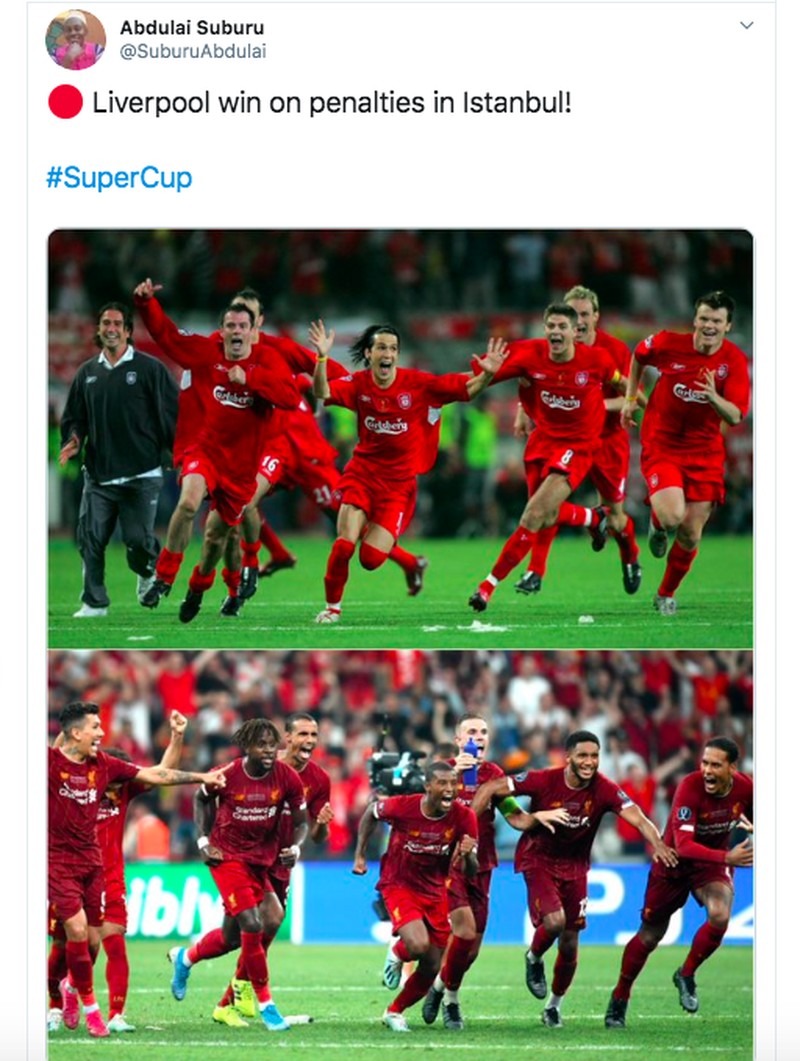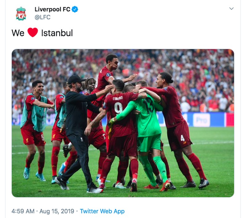 Kami cinta Istanbul, begitu tulis akun resmi Liverpool di Twitter usai menang adu penalti lawan Chelsea dan menggondal piala Super Eropa. Foto: istimewa