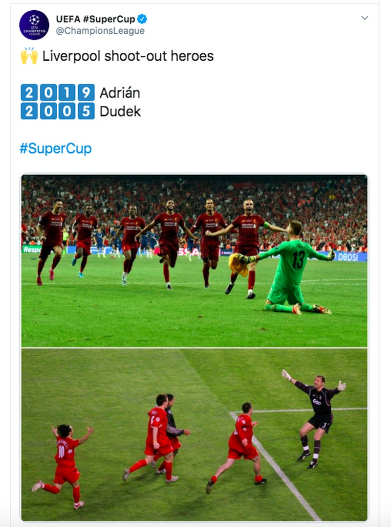 Pada tahun 2005 dalam final Liga Champions, Liverpool juga menang adu penalti lawan AC Milan di Istanbul. Kala itu, kiper Jeryz Dudek jadi pahlawan. Kini, kiper Adrian yang jadi pahlawan. Foto: istimewa