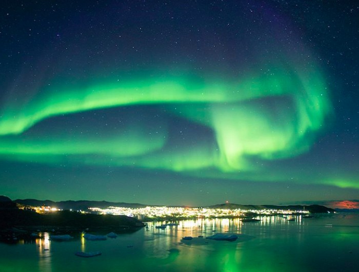Penampakan spektakuler cahaya aurora di atas Greenland yang menjadi salah satu atraksi wisata. Foto: Instagram