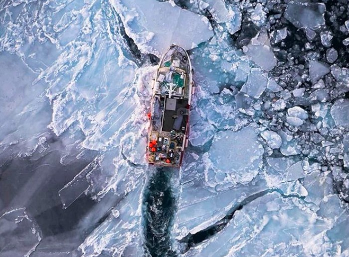 Kapal pemecah es di lautan Greenland. Foto: Instagram