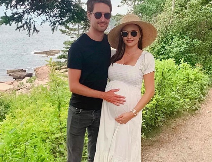 Foto paling baru bersama suami, Evan Spiegel, yang adalah bos layanan messaging dan media sosial untuk anak muda, Snapchat. Foto: Instagram