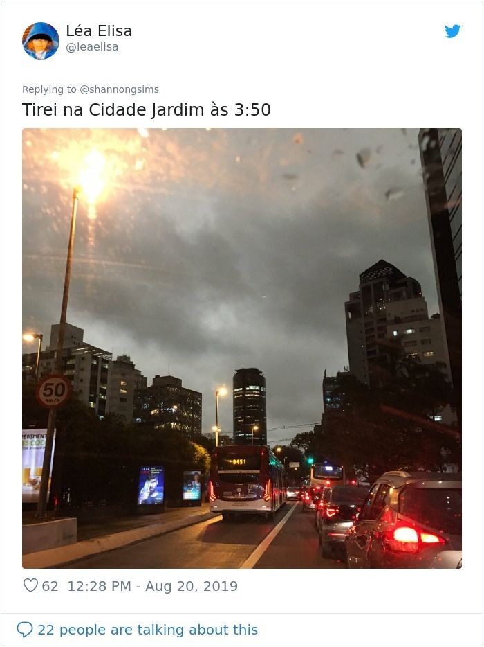 Netizen Sao Paulo menyebut, langit kelam sudah bisa terlihat sejak sekitar pukul 15.00. Matahari baru akan terbenam sekitar 2 jam kemudian. (Foto: Internet/Twitter)