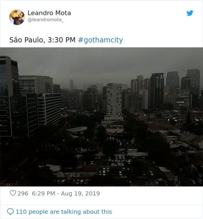 Saking prihatinnya, ada netizen yang menyebut kelamnya Sao Paulo tak ubahnya seperti kota Gotham yang didiami superhero Batman. (Foto: Internet/Twitter)