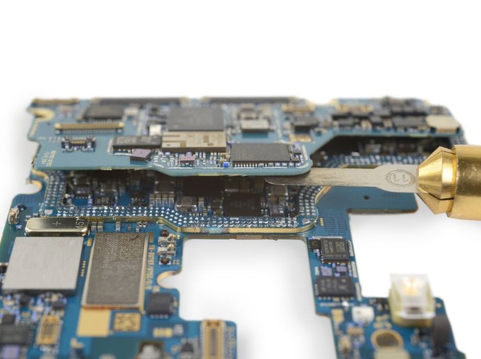Seperti dilakukan Apple, Samsung menggunakan papan bertumbuk sehingga lebih menghemat ruang. Foto: ifixit