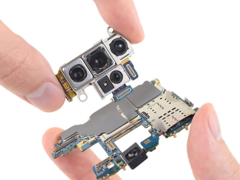 Sensor sidik jari ultrasonik yang mirip dengan S10 terpasang di bagian belakang. Foto: ifixit