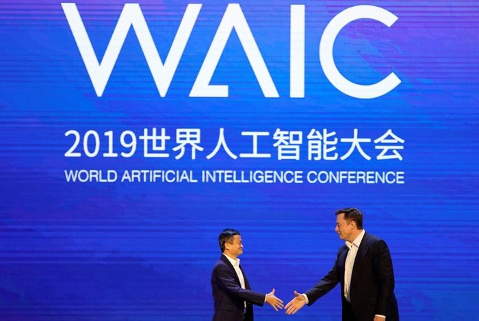Keduanya menjadi pembicara pada ajang World Artificial Intelligence Conference yang berlangsung pada 29-31 Agustus di Shanghai, China. Foto: Reuters