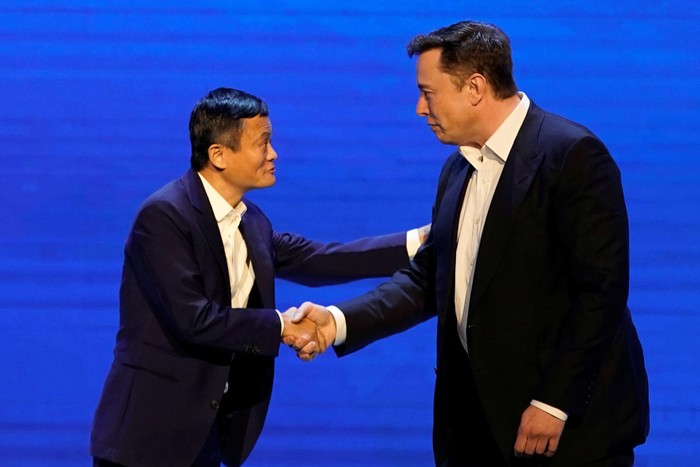 Jack Ma menjabat erat tangan Elon Musk. Jack Ma tenar dan kaya raya berkat kesuksesan e-commerce Alibaba. Sedangkan Elon punya perusahaan mobil listri Tesla serta SpaceX yang bergelut di bidang antariksa. Foto: Reuters