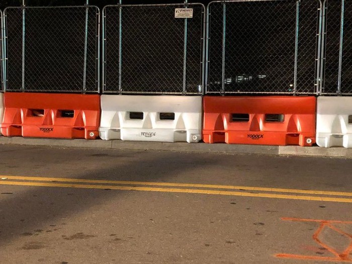Pembatas jalan yang seperti memiliki bentuk wajah mata, hidung hingga mulut. (Foto: Brightside)