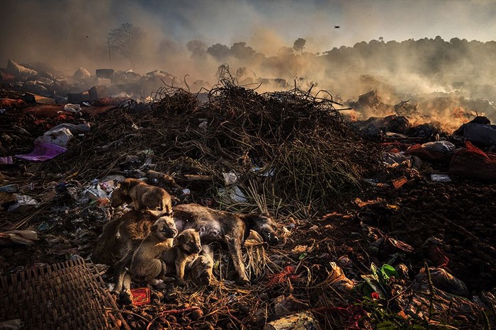Silver Prize Open Award Single Photo diraih Zay Yar Lin dari Myanmar. Ia memotret seekor anjing betina tengah menyusui di tumpukan sampah. Setelah dilihat seksama, anjing betina itu ternyata sudah tewas dengan tubuh luka-luka. Foto: Nikon Photo Contest