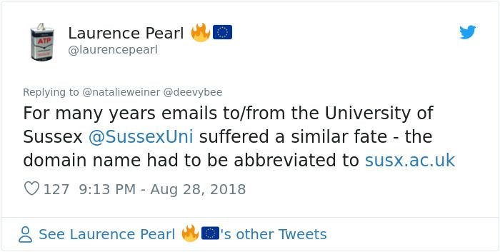 Ternyata Universitas Sussex di Inggris pun kesusahan karena nama. Bagian "sex"-nya itu sih yang dianggap mesin sebagai kata tak pantas. (Foto: via Boredpanda.com)