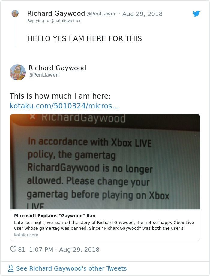 Akun Richard Gaywood dengan nama aslinya di Xbox LiveΒ tak boleh lagiΒ dipakai. Itu gara-gara unsur "Gay" di nama belakangnya.Β (Foto: via Boredpanda.com)