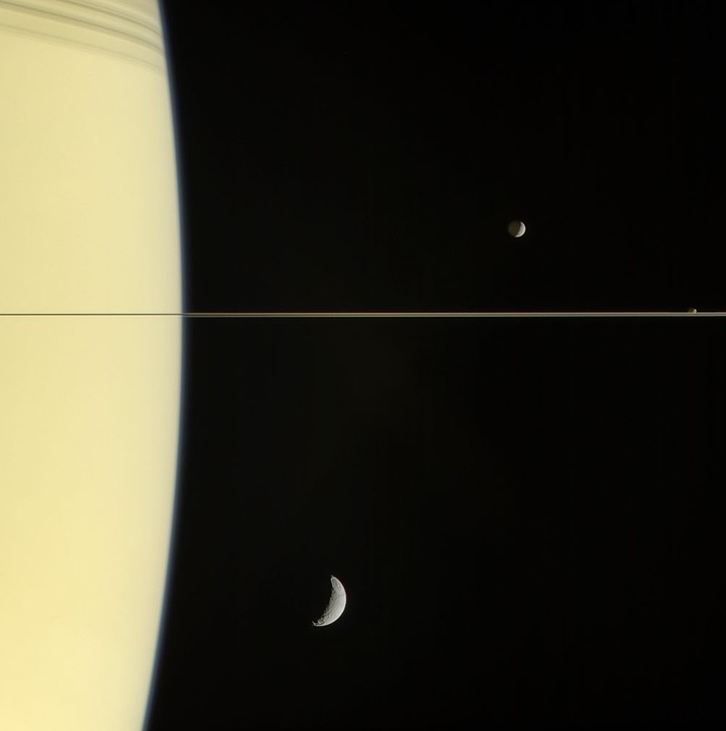 Cassini yang sudah 'bunuh diri' juga sempat mengabadikan cincin Saturnus yang tampak sangat tipis dari sudut pandang kameranya. Foto: NASA