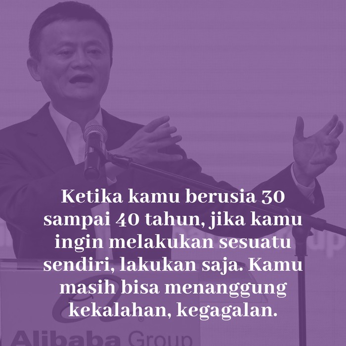 Jack Ma resmi pensiun dari Alibaba. Tetapi kiprahnya di dunia bisnis takkan luntur dan masih akan terus menginspirasi. Contohnya lewat kalimat-kalimat ini.