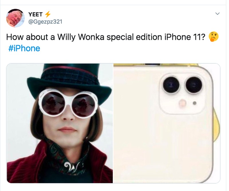 Kamera iPhone 11 disandingkan dengan Willy Wonka berkacamata. Foto: istimewa