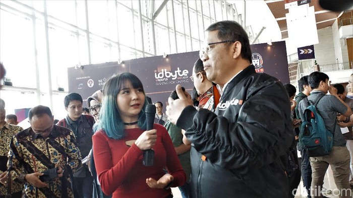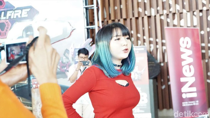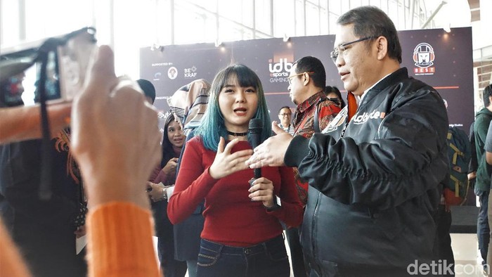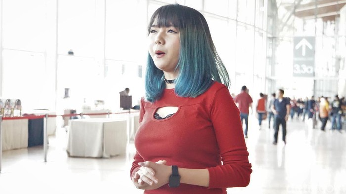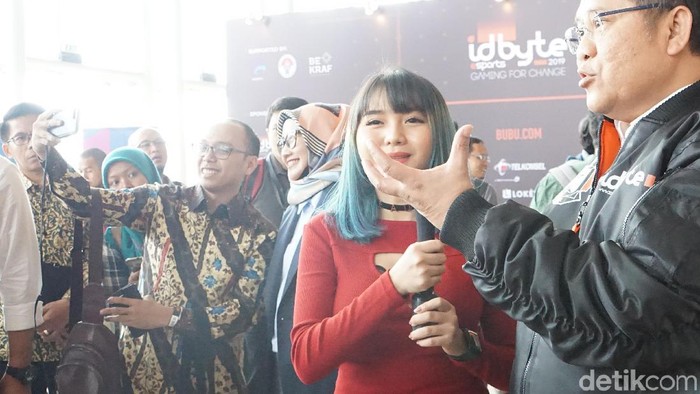 Sarah Viloid ikutan wara-wiri di ajang seru IDBYTE ESPORTS 2019. (Foto: Aisyah Kamaliah/detikINET)