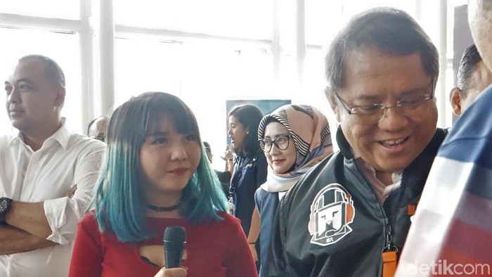 Nah, ini nih salah satu yang ditungguin Sarah. Ia mau ngevlog bareng Menkominfo. "Nggak sih cuma pengen ngobrol aja sama pak menteri," katanya. (Foto: Aisyah Kamaliah/detikINET)
