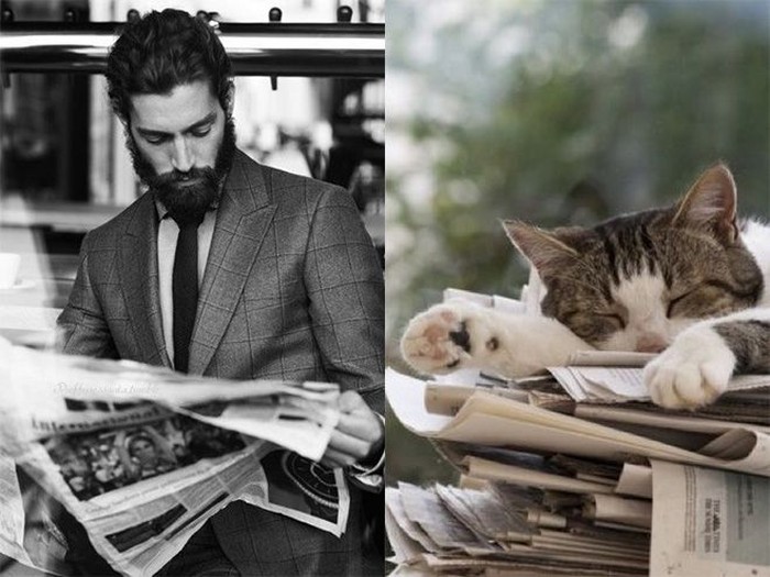 Baca koran, si kucing malah tidur. (Foto: sadanduseless)