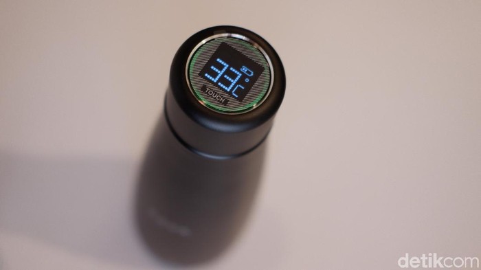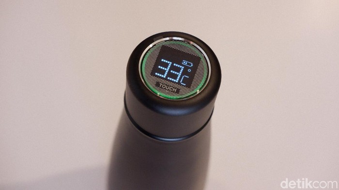 Bagian atas terdapat layar LCD sentuh untuk menunjukan temperatur dengan warna berbeda sesuai dengan isi tumbler. Foto: Adi Fida Rahman/detikINET