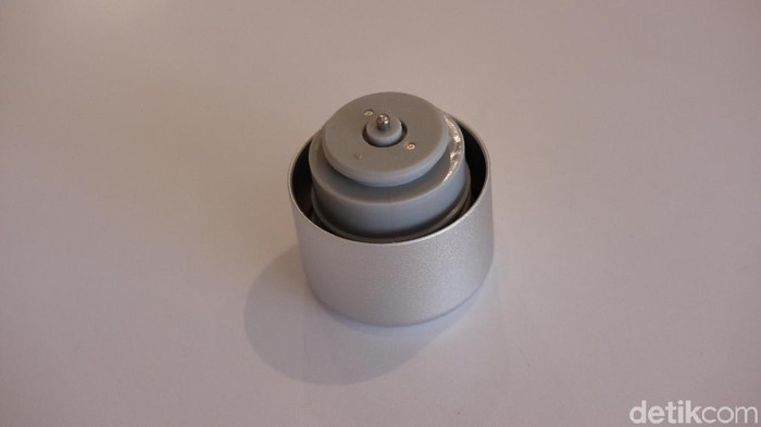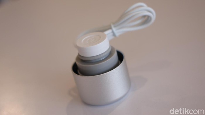 Alat pengisi daya menggunakan bahan magnet, pastikan posisi adaptor terpasang sempurna dengan salah satu bagian penutup tumbler. Lamanya isi ulang 60 menit. Foto: Adi Fida Rahman/detikINET