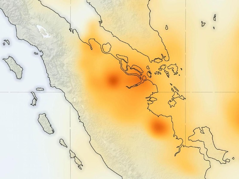 Peta data karbon pada 17 September 2019 dari permodelan GEOS Forward Processing (GEOS-FP). Tampak api yang begitu parah di tengah Kalimantan menyebar sampai ke arah Natuna (dok NASA)