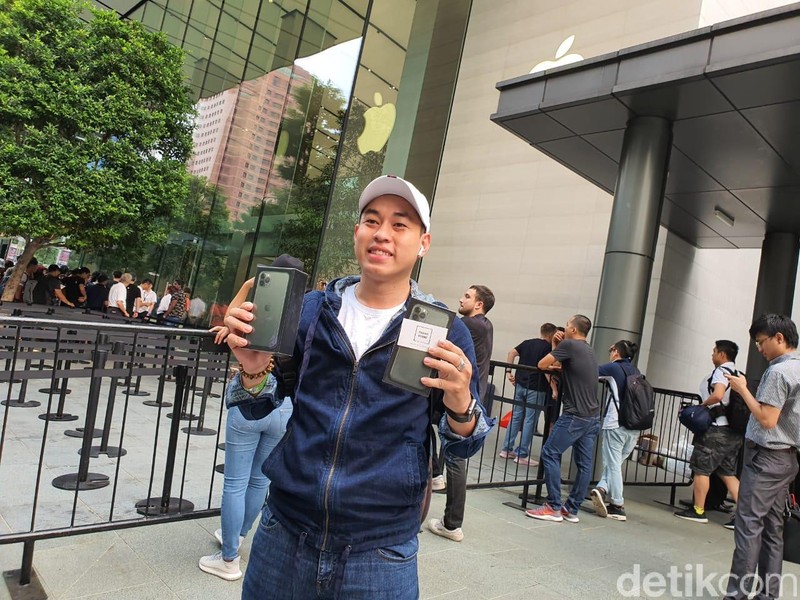 Perjuangan mereka terbayar setelah berhasil menggaet iPhone 11 idaman. Foto: Adi Fida Rahman/detikINET