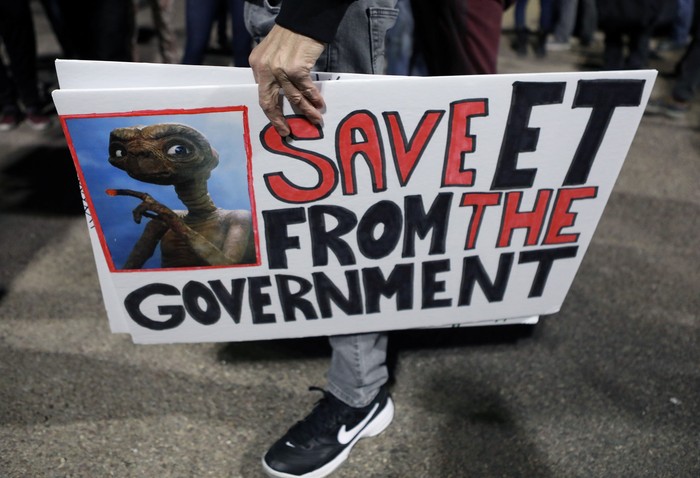 "Save ET (alien) dari pemerintah," kata mereka. Foto: AP