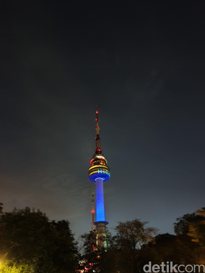 Saat memasuki malam hari pun keindahan Kota Seoul dari N Seoul Tower pun masih dapat dinikmati tanpa kamera night mode. Foto: detikINET/Widiya Wiyanti