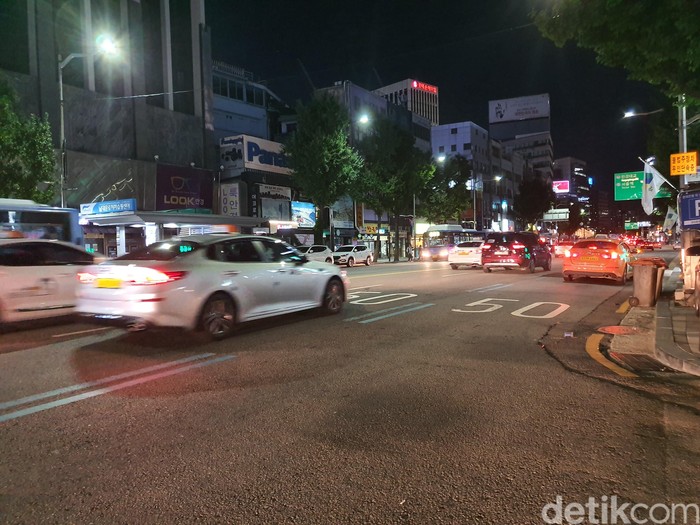 Jika tidak menggunakan night mode, begini hasil jepretan malam hari di Seoul. Tidak kalah keren lho! Foto: detikINET/Widiya Wiyanti
