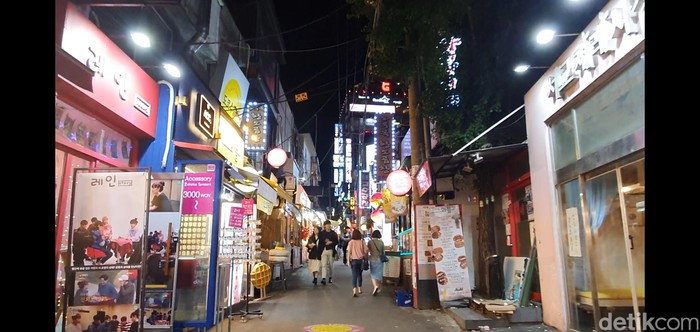 Begini kondisi malam di Hongdae Street. Foto: detikINET/Widiya Wiyanti
