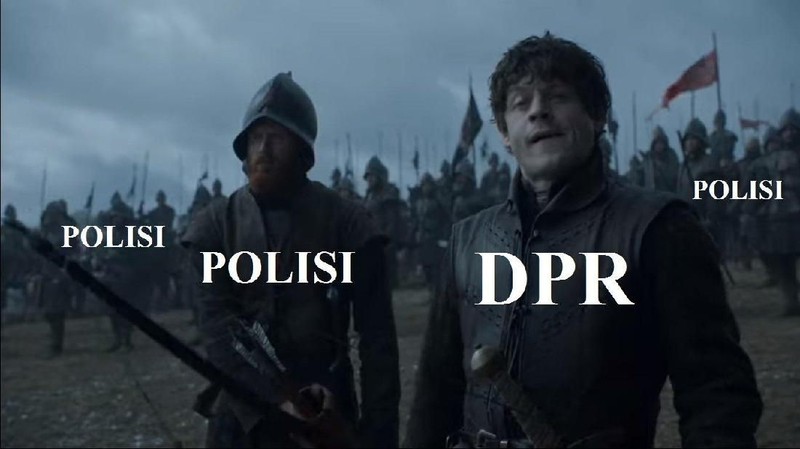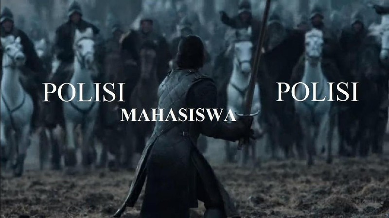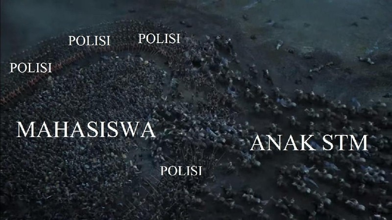 Meme unik ini membandingkan aksi mahasiswa dan anak STM dengan adegan film Game of Thrones (Anggitdl/Twitter)