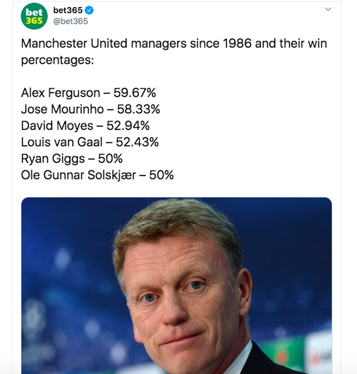Setelah dilihat-lihat, prestasi David Moyes selama melatih MU tak buruk-buruk amat. Foto: Twitter