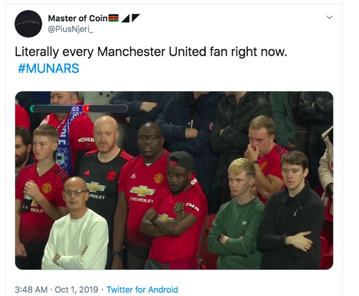 Ekspresi sedih para fans MU. Foto: Twitter