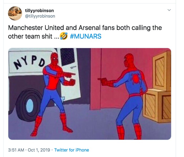 Fans MU dan Arsenal saling tuding menyebut tim lawan sampah. Foto: Twitter