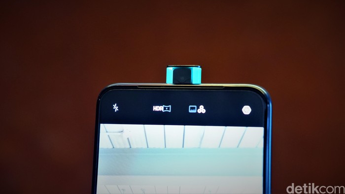 Kamera depan berukuran 16 MP dengan mekanisme pop-up danΒ efek cahaya.Β Foto: Adi Fida Rahman/detikINET