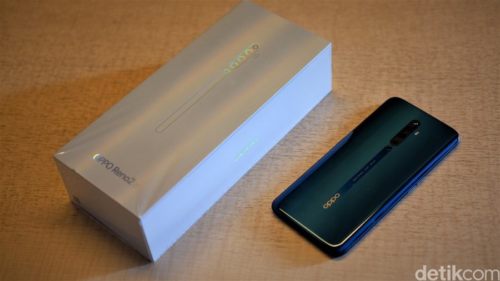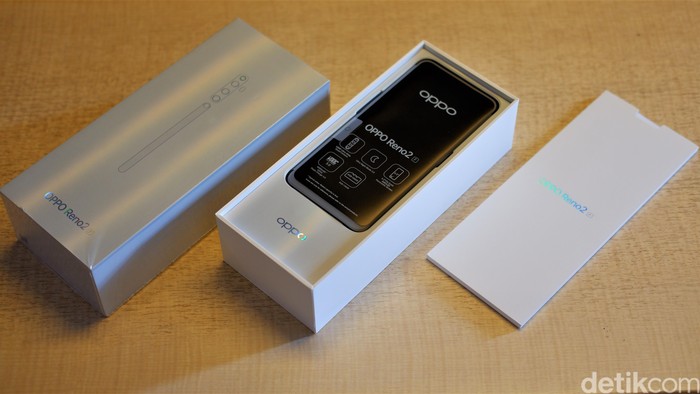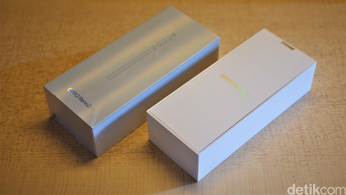 Seperti jajaran ponsel lain Oppo, kotak kemasan Reno2 F dibuat panjang. Foto: Adi Fida Rahman/detikINET