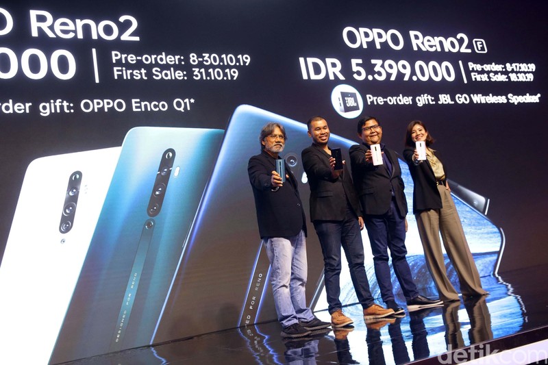 Oppo membuka pemesanan awal Reno 2F mulai 8-17 Oktober mendatang. Ponsel ini mulai dijual 18 Oktober dan dibanderol seharga Rp 5,399 juta. Pembeli diberikan bonus JBL Go Portabel Wireless Speaker.