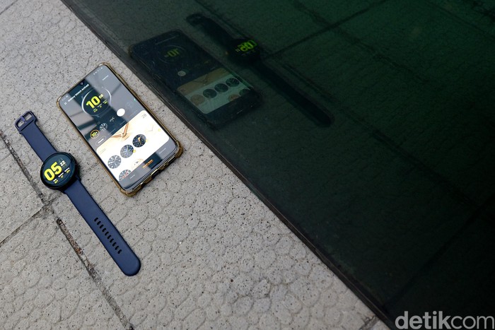 Fungsi lain, ketika Galaxy Watch Active2 dipasang dengan smartphone Galaxy, misalnya, Watch Camera Controller memungkinkan mengambil foto, mulai merekam video, melihat cuplikan rekaman pada jam tangan, berganti lensa depan dan belakang, mengatur timer dan kemudian periksa foto atau video terakhir. Serta dapat mengatur musik spotify ataupun nonton Youtube. (Foto: Muhammad Ridho/detikcom)