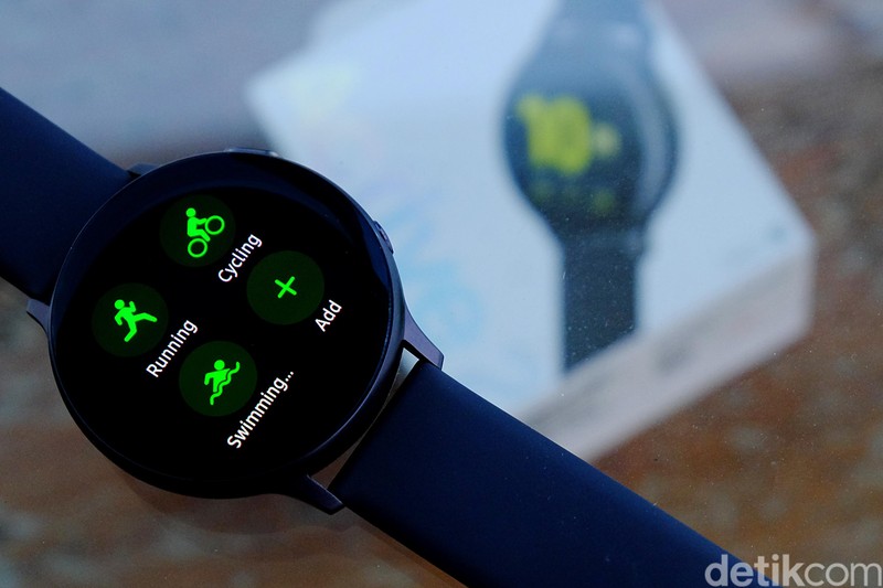 Untuk fungsi olahraga, Galaxy Watch Active2 dapat secara manual melacak lebih dari 39 latihan yang tujuh di antaranya diaktifkan secara otomatis yaitu berlari, berjalan, bersepeda, berenang, mesin dayung, mesin elips dan latihan dinamis. (Foto: Muhammad Ridho/detikcom)