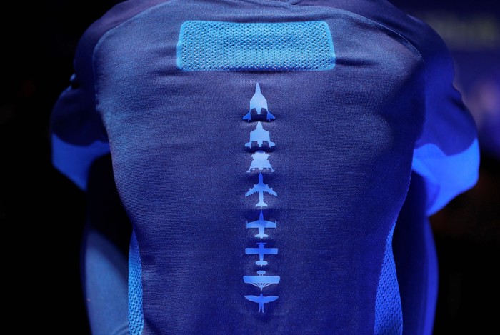 Penampakan bagian belakang kostum angkasa Under Armour. Foto: Reuters