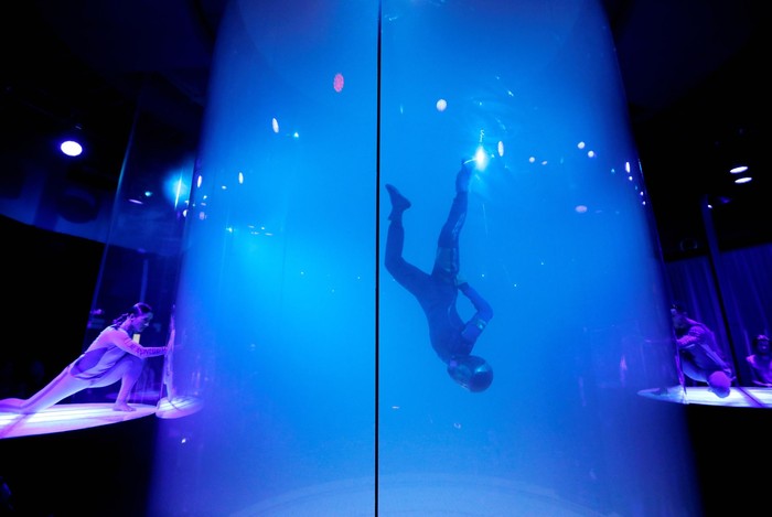 Perkenalan kostum itu dilakukan dengan atraksi di gravitasi nol. Foto: Reuters