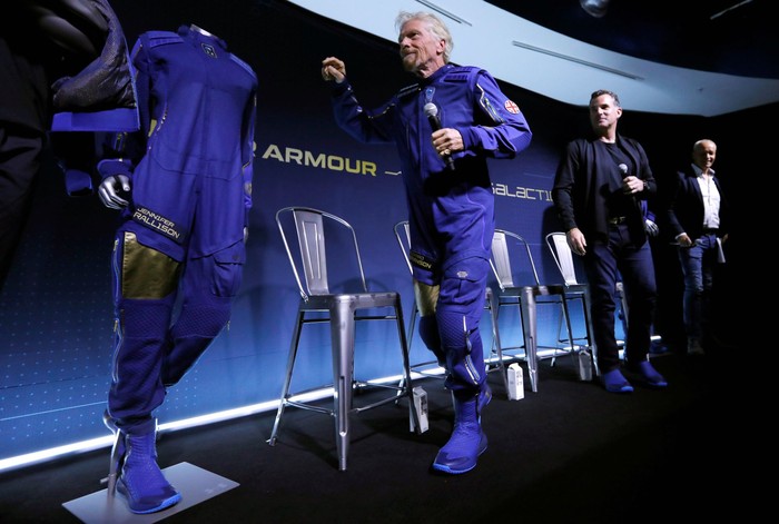 βAku suka dengan penampilan baju angkasa ini dan rasanya kertika memakainya. Juga nanti ketika aku mengenakannya adalah pada saat aku menuju antariksa,β kata Richard Branson, sang empunya Virgin Galactic. Foto: Reuters