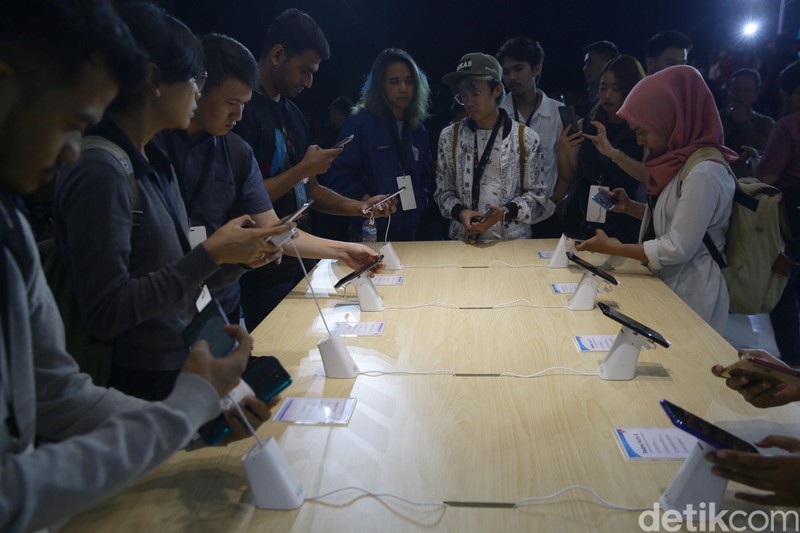 Para pengunjung mencoba Redmi Note 8 Pro. Foto: Grandyos Zafna/detikcom
