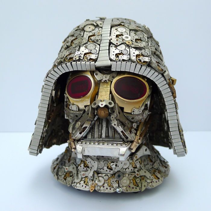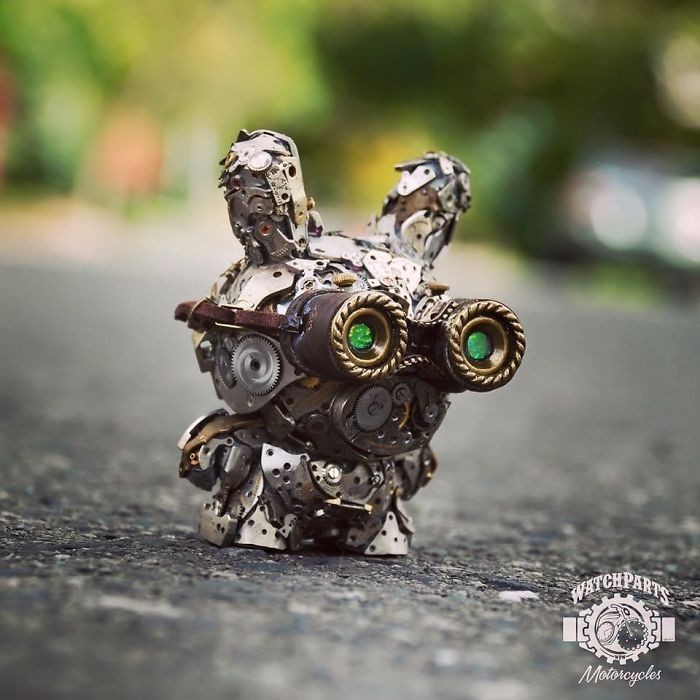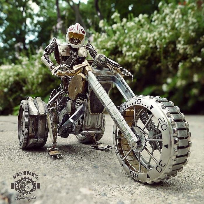 "Dalam beberapa tahun terakhir, saya mengalihkan perhatian saya untuk mengerutkan berbagai objek ikonik seperti tengkorak, figur vinil, kamera, dan karakter Star Wars," katanya. (Foto: Instagram/watchpartsmotorcycles)